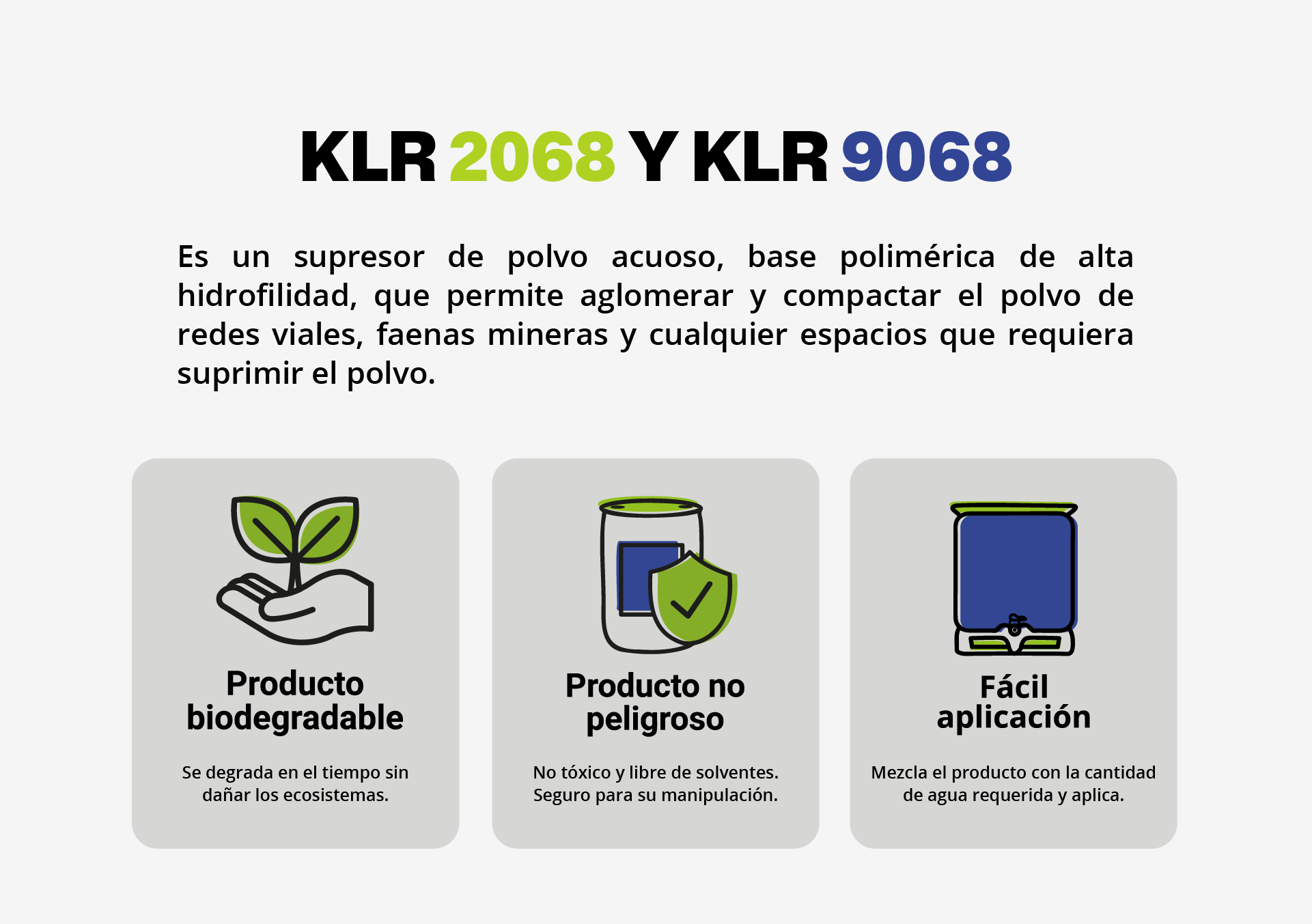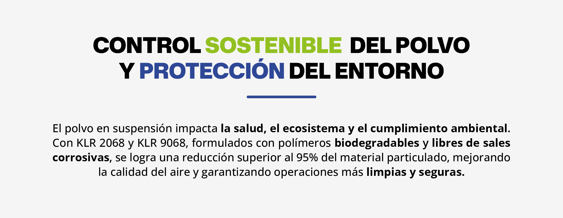 KLR ofrece supresores de polvo poliméricos para minería e industria. Productos biodegradables, no corrosivos y de alto rendimiento para un control eficiente del material particulado.