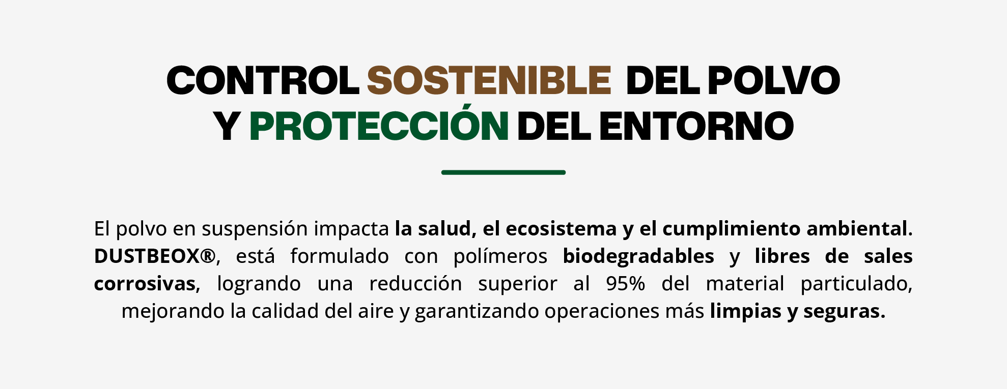 DustBeox® ofrece supresores de polvo poliméricos para la industria Agricola, Minera, Municipalidades e industria. Productos biodegradables, no corrosivos y de alto rendimiento para un control eficiente del material particulado.